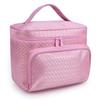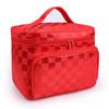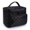 This foldable, large-capacity cosmetic and jewelry organizer features a lightweight polyester exterior with stylish geometric and plaid patterns. it offers ample space for travel essentials and daily use. Its nylon lining ensures durability and easy cleaning. Ideal for home storage or on-the-go organization, it supports frequent use and simple maintenance.