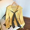Striped pullover knitted autumn contrasting top with shawl two-piece set