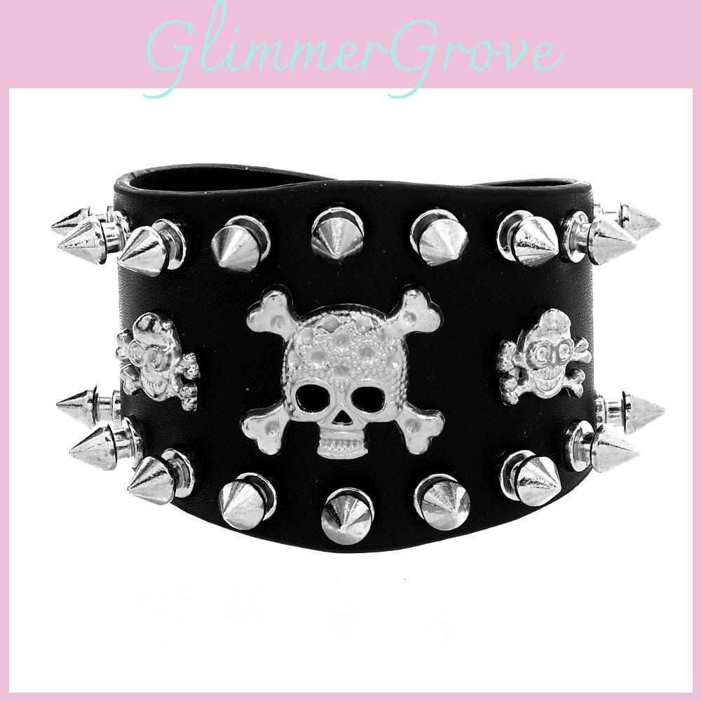 Punk Skull Hand Cuff Bracelet With Metal Alloy And Rivet Detailing For Rock Music Fans