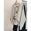 Gray horn buckle knitted cardigan women's early autumn loose soft waxy outer sweater jacket top