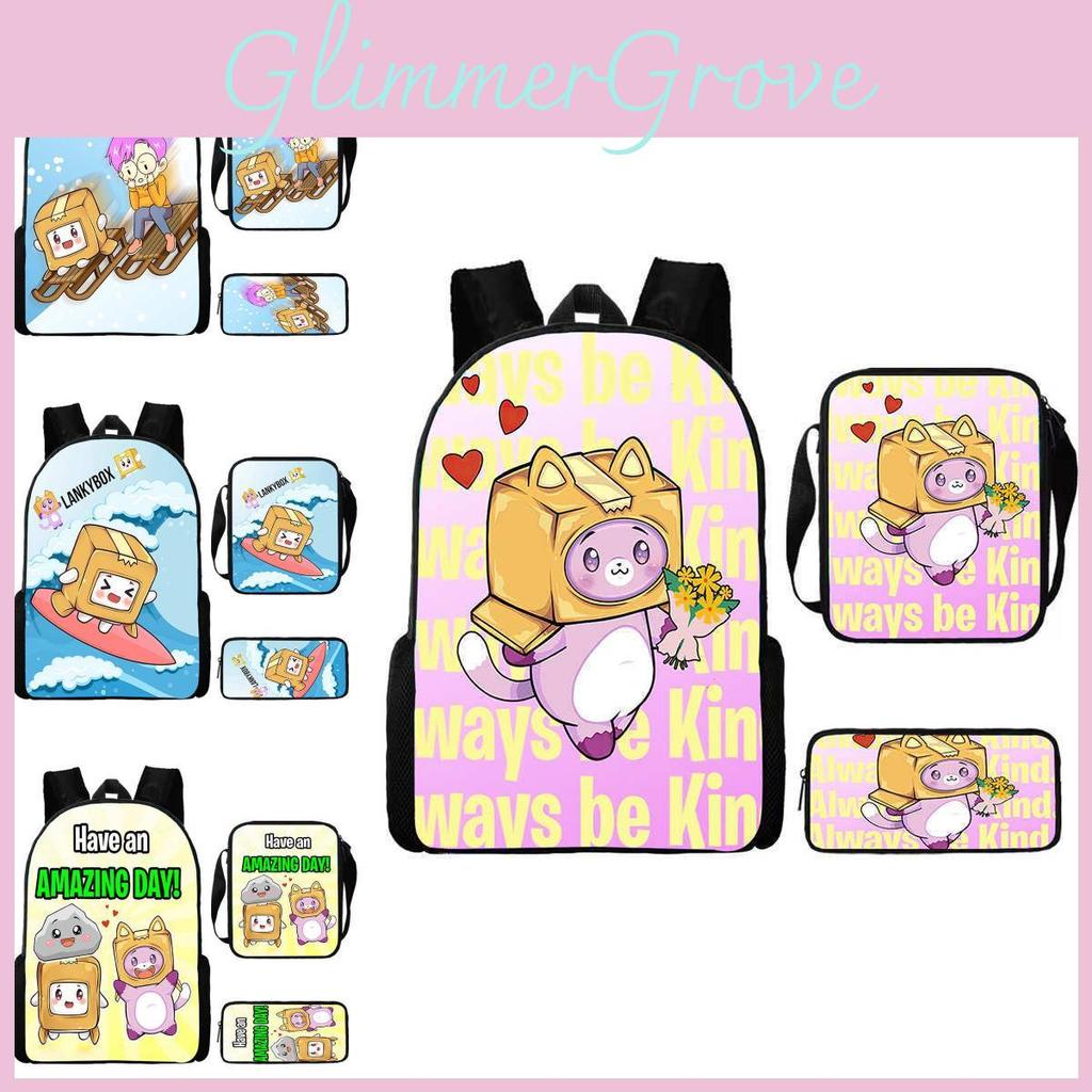 This Lankybox-themed school backpack set features a lightweight oxford fabric design with breathable, cushioned straps for comfortable daily use. The set includes a spacious backpack, a convenient shoulder bag, and a pen case, all adorned with colorful cartoon prints. Ideal for elementary students, it supports ample storage and easy organization. Wipe clean with a damp cloth for maintenance.