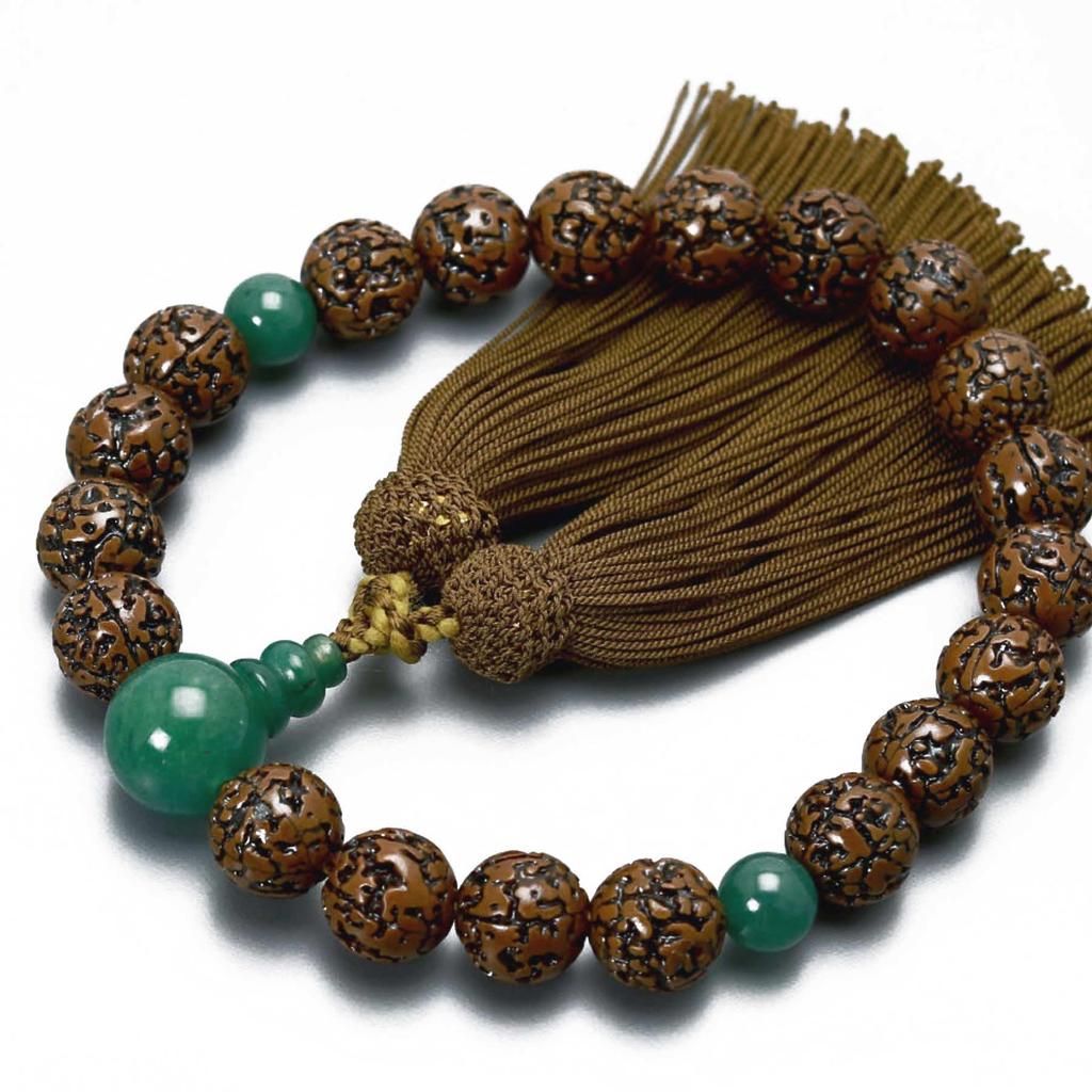 Men's Buddhist Prayer Beads, "Muryo Kongoju" (20 beads) with a cashew lacquer finish, by Aven, made with genuine silk tassels. Suitable for all