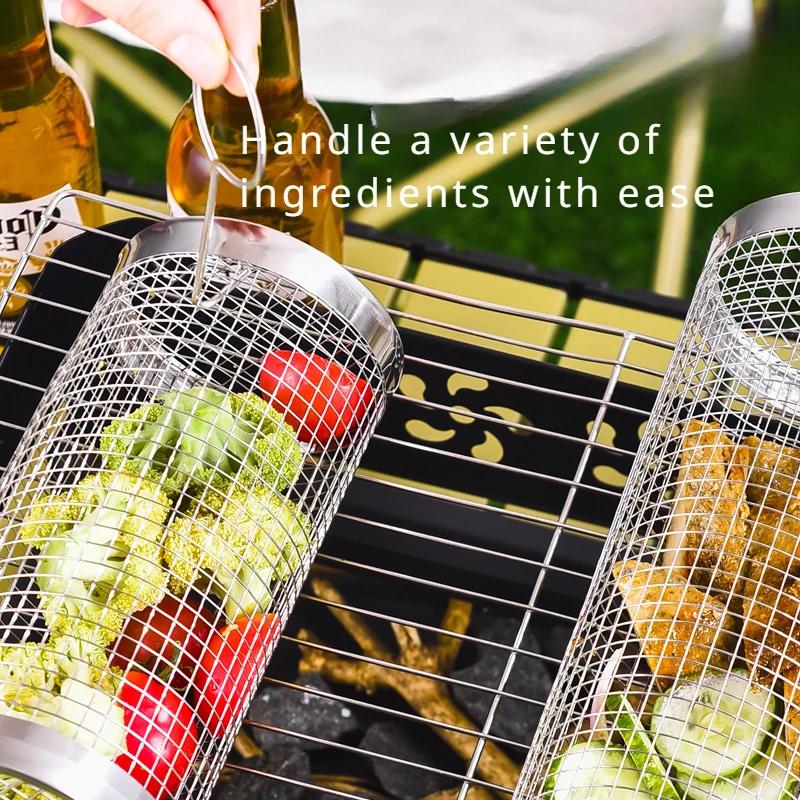 BBQ Cage Rolling New Type Stainless Steel Round Rolling Grill Basket Outdoor Portable Grill Basket Barbecue Rack Stainless Steel