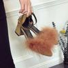 Modische Klobige Schwarze Schuhe Damen Schuhe Blau mit Mittelhohen Absätzen Sommer 2024 Blockabsatz Sandalen für Frau Dicke Spitze Lässig Vip