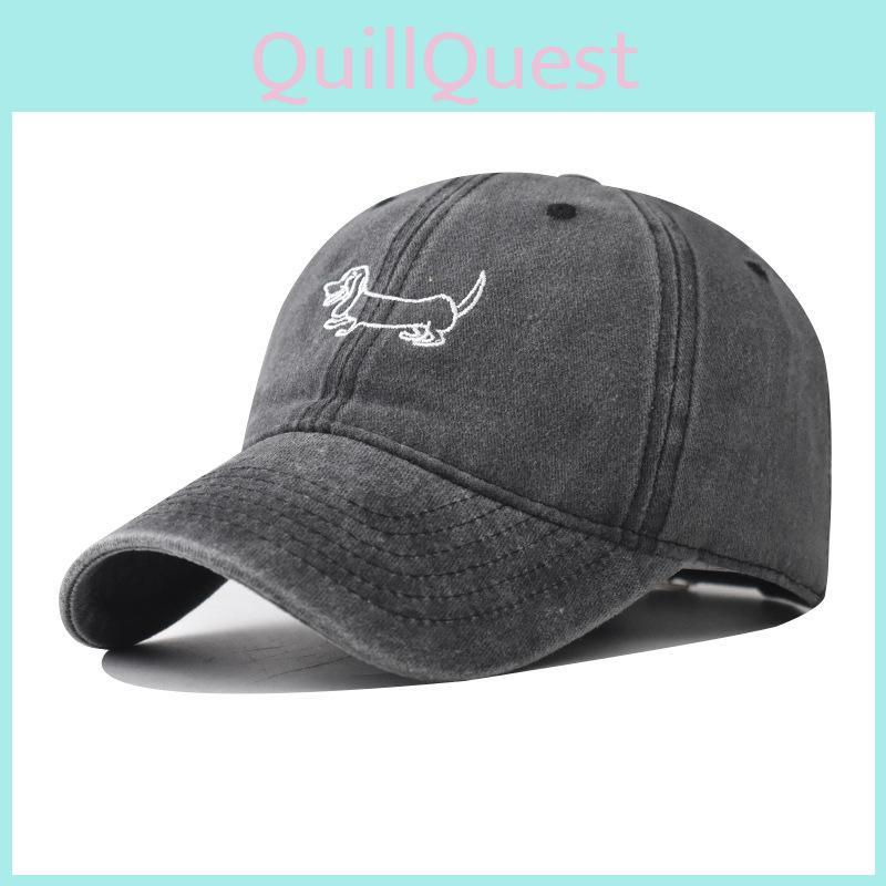 Cotton Vintage Dog Embroidered Baseball Cap With Curved Brim For Outdoor Casual Wear