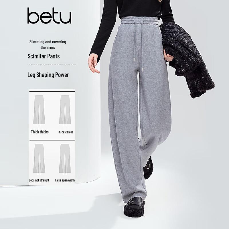 Betu Women's 2025 Winter Elastic Waist Curved Wide-Leg Pants