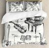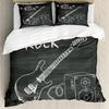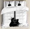 Gitarren Bettbezug Set, E-Gitarre im brennenden Hardrock Musikalische Kreativität Konzept, Schlafzimmer Dekor Bettwäsche Set Dekor