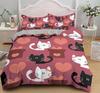 Cartoon Niedliche Katze Daunendecke Bettbezug 3-teiliges Set Einseitiger Druck Bettwäsche-Set Bequemer Deckenbezug mit 2 Kissenbezügen