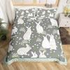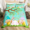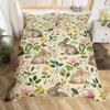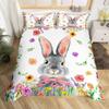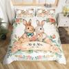 Kawaii Haustier Kaninchen Bettbezug Set Full King Frühling Botanische Blätter Bettwäsche Set Osterhasen Paar Schleife Druck Steppdecke