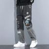 Herren-Jeans mit Buchstabendruck, lockere Cartoon-Graffiti-Leggings, Kordelzughose