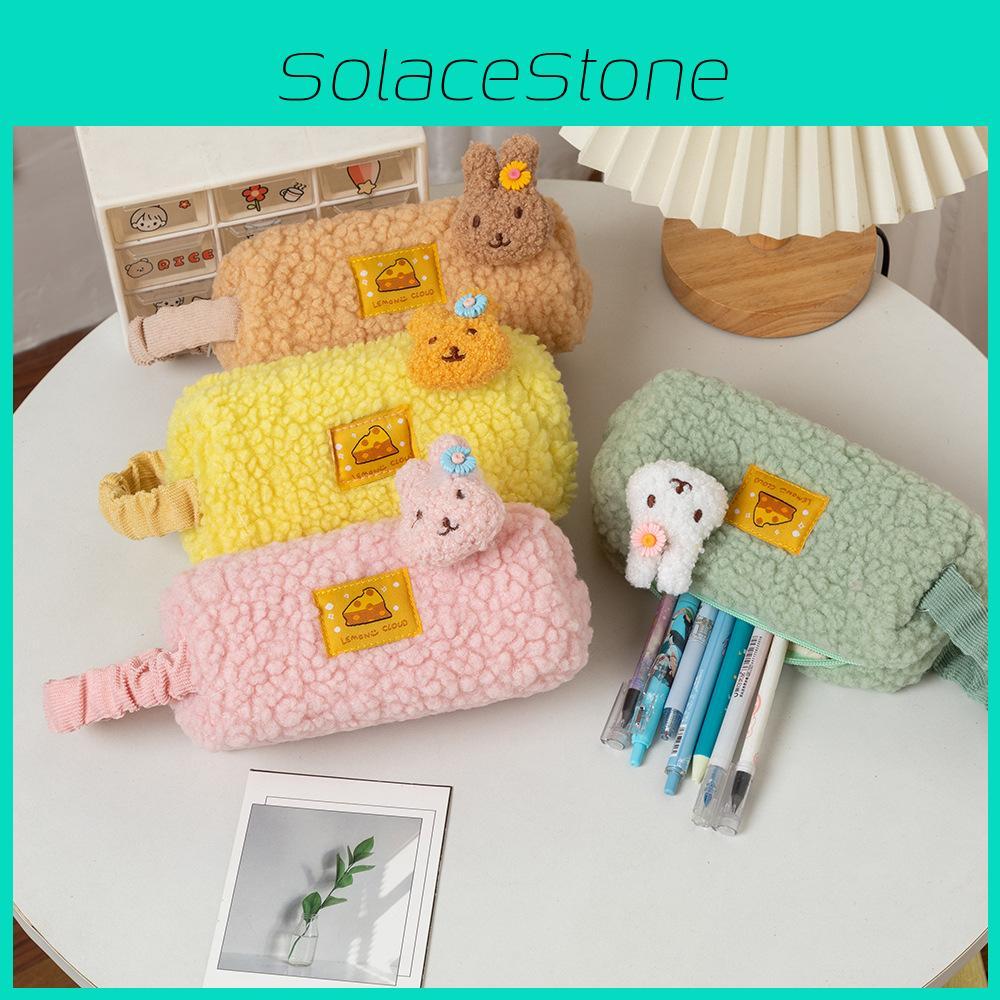 Dieses Cartoon-Federmäppchen verfügt über ein geräumiges Design, gefertigt aus weichem Lammwollmaterial.. Sein minimalistischer Stil mit lebendigen Farboptionen wie Pink, Gelb, Grün und Khaki unterstützt die organisierte Aufbewahrung für Schulmaterial.