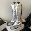 Mode Silber Damen Zehenfrei Damen Kniehohe Stiefel Schuhe Mit Dünnen Absätzen Schuhe Mode Reißverschlüsse Damen Sandalen mit Absatz Stiefel Schuhe