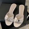 Mode Liyke Modedesign Metallschnalle Damen Hausschuhe Gemütliche Plissierte Seide Sommerparty Niedrige Absätze Gladiatorsandalen Damen Pantoletten Schuhe