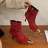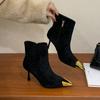 Mode Mode Spitz Metall Damen Knöchel Modern Stiefel Mit Absätzen Schuhe Damen Kurze Stiefel Weiblich Reißverschlüsse Schuhe Pumps