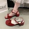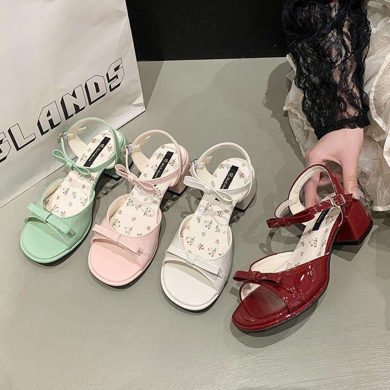 Mode Retro Damen Schuhe Klare Absätze 2025 Sommer Zehenfrei Hohe Sandalen Weiblich Original Peep High-Heel Neu Block Außen Schleife