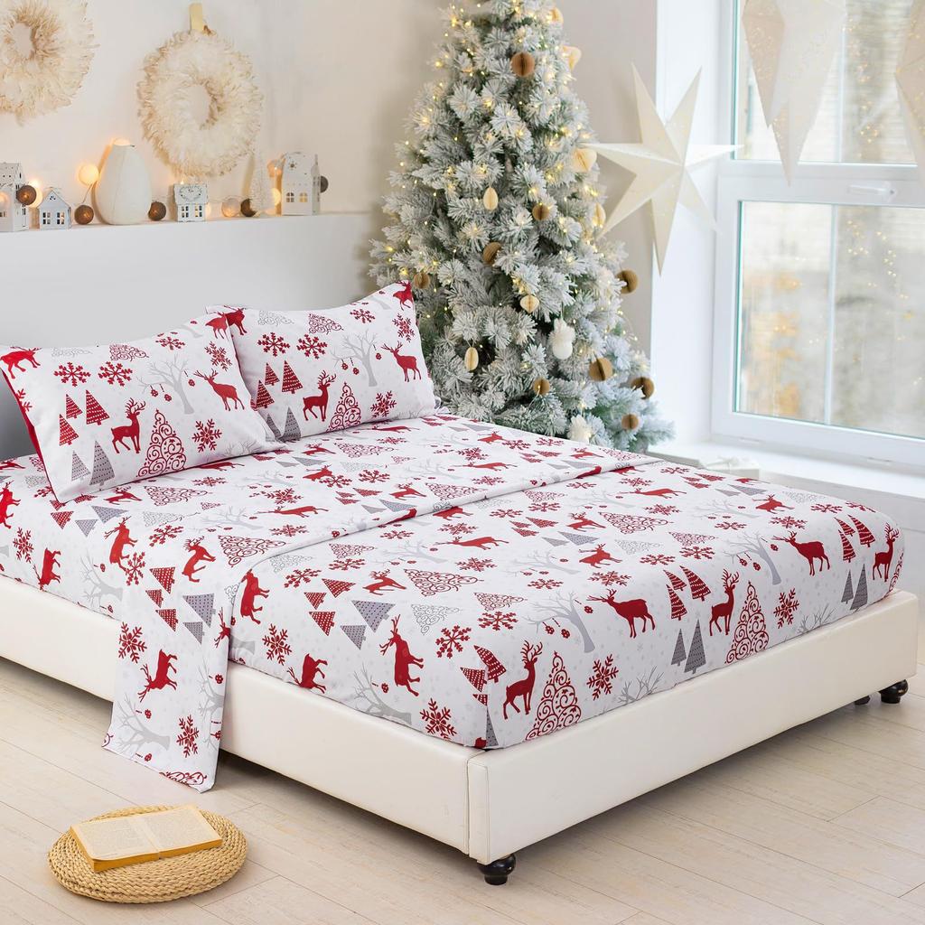 Christmas Tree Elk Pattern Bed Hat Four-Piece Bedding Set Bedroom Dormitory Bedding Decoration