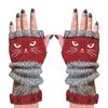 1 Paar Herbst-Winter Neue Katzenstickerei Farbkontrast Retro Warme Mode Offenfingerhandschuhe Verdickte Damen-Freizeithandschuhe