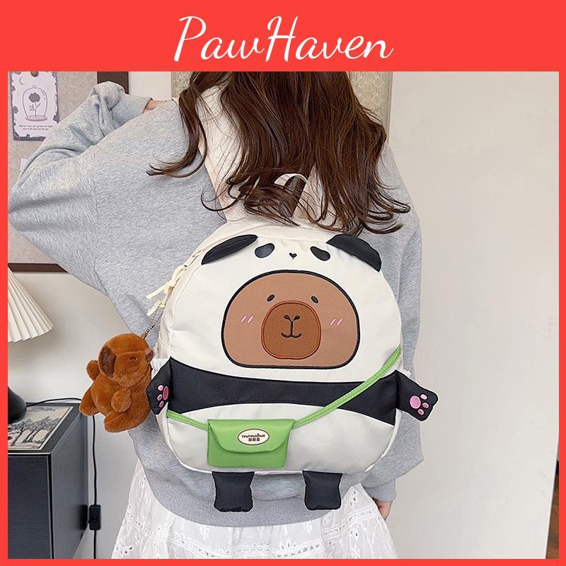 Capybara Print Student Backpack With Breathable Fabric And Ergonomic Shoulder System