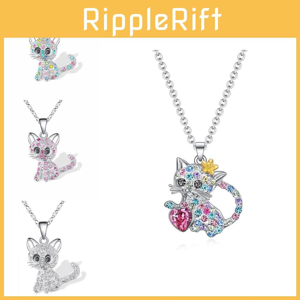 Colorful Heart Cat Necklace With Electroplated Finish For Women Jewelry