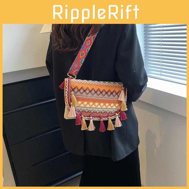 This modern ethnic-style crossbody bag features a soft, durable canvas construction with a water bucket shape and a flowing tassel accent, combining fashion and function.it offers a lightweight and versatile design. Ideal for daily use, it supports casual outings and stylish accessories. Wipe clean with a damp cloth for maintenance.