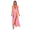 Neuheiten Damen Sexy High Split Kleider Ärmellos Tiefem V-Ausschnitt Hoher Schlitz Lange Party Bodycon Rote Sommerkleider