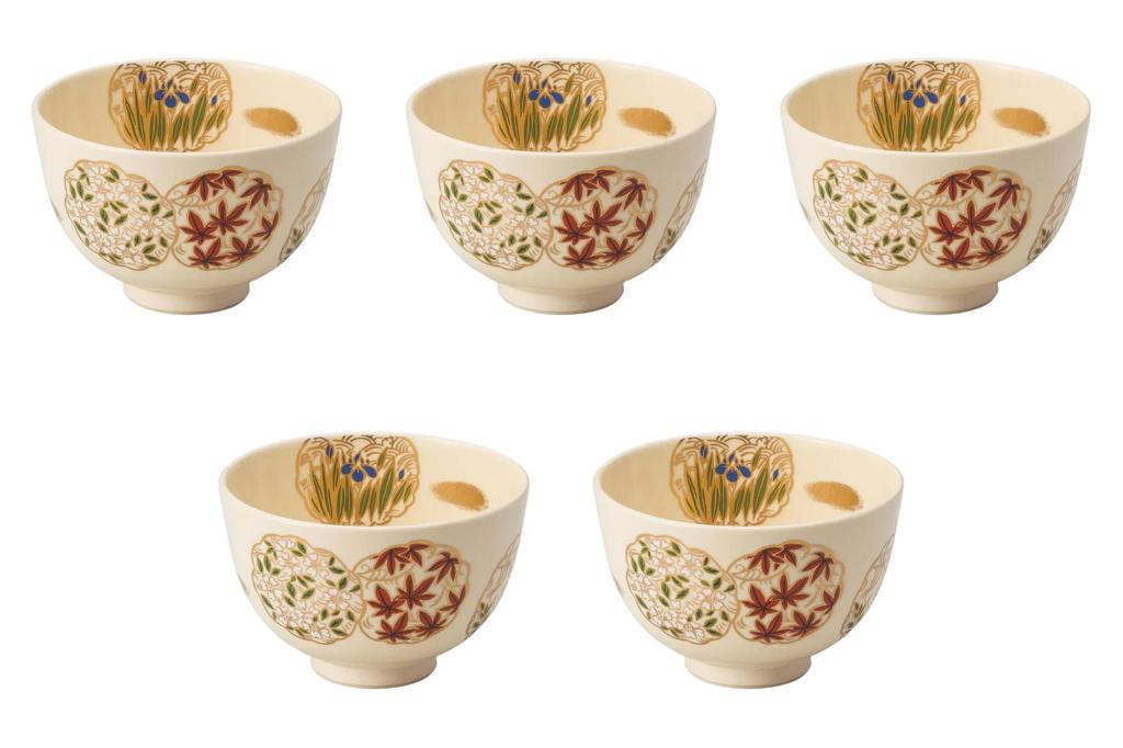 Set mit 5 Ninsei Vier Jahreszeiten Blume Matcha Schalen [12 x 7,5cm] Matcha Schalen Setomonohonpo
