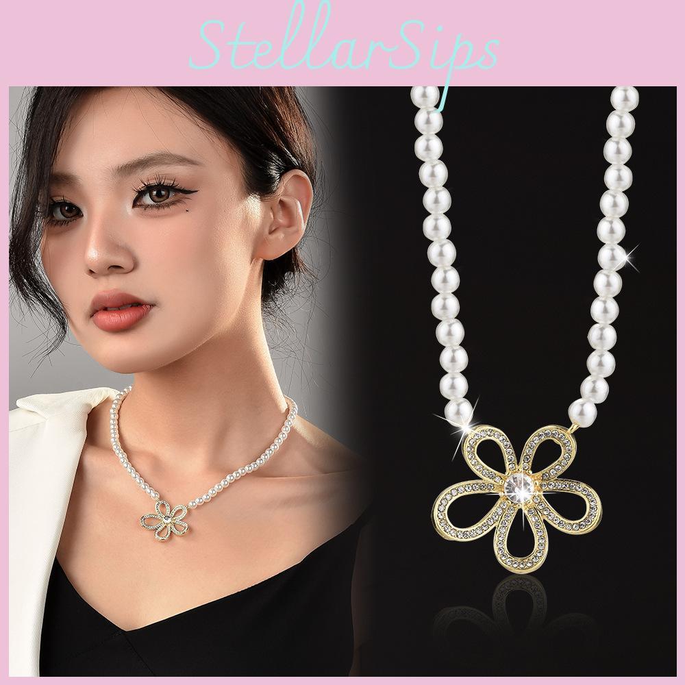 Hochwertige Gold- und Silber-Blumen-Perlenkette für Damen, ideal für stilvolle Bürokleidung im Jahr 2024