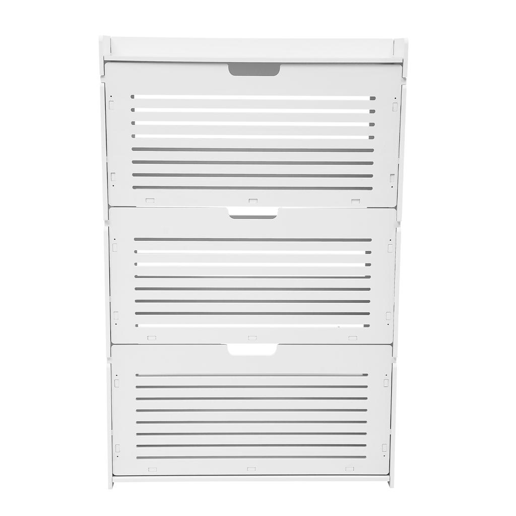 White Flip Up Shoe Cabinet 3 Tier Storage Organizer PVC Space Saving Entryway Hallway Closet for Small Apartments