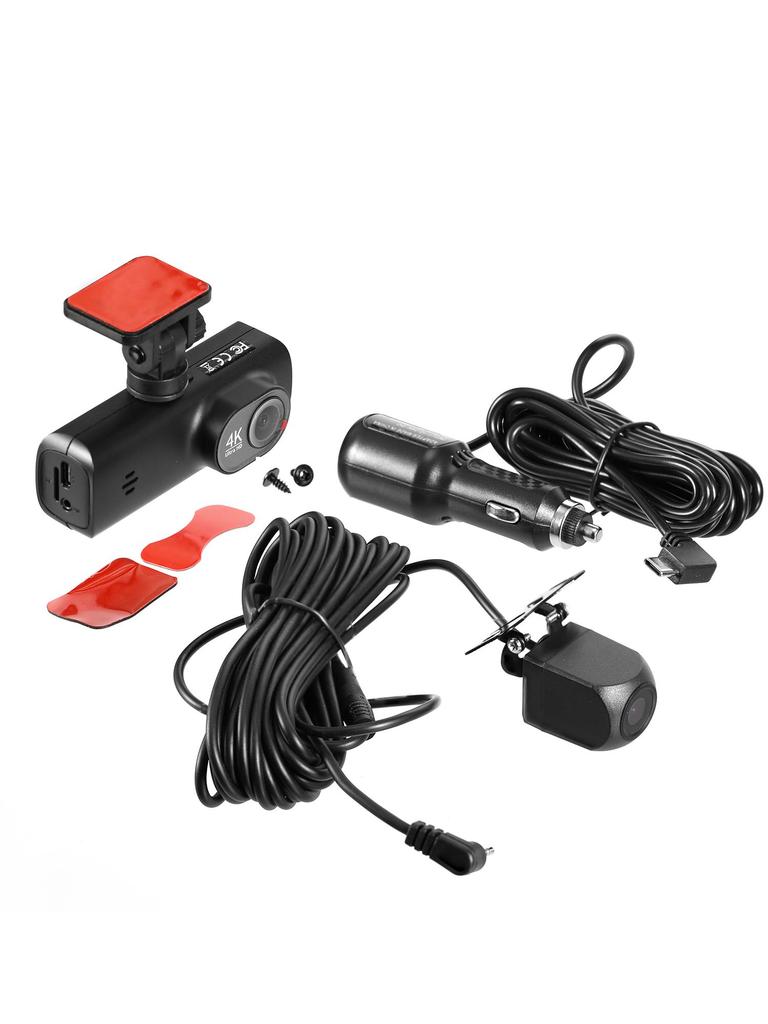 Camera Specifications: This black-cased dashcam features a front-facing 2160P Full HD camera with night vision support. It uses a GC CMOS sensor, a 170° wide-angle lens, and 6G (120° rotation) capability, recording 4K resolution 3840*2160P video. The rear 1080P camera has a 140° wide-angle lens, ensuring clear capture of license plates and road signs even at night.