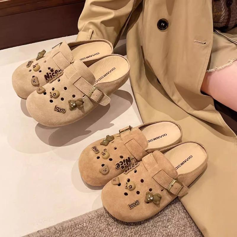 Ein neuer Stil von Retro-Schuhen mit Klappdeckel und dicken Sohlen, halb Klappdeckel und halb Pantoffel für Damen