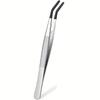 2PCS Stainless Steel Reptile Feeding Tongs with Rubber Tip, 10.6” Flat & Curved Long Tweezers for Aquarium or Craft, Bearded Dra
