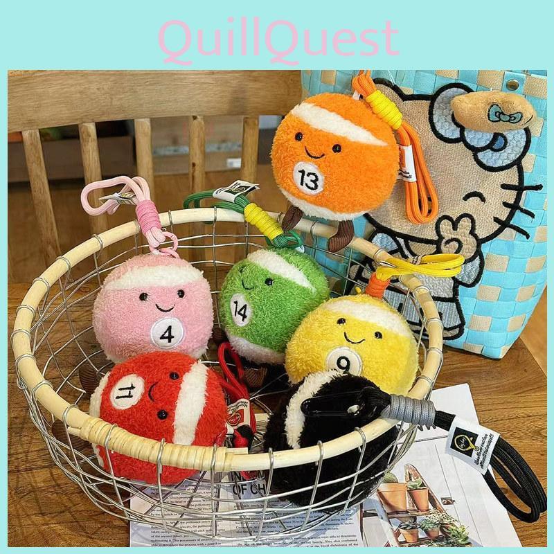 Short Plush Billiard Ball Keychain With Cute Shape For Party And Bag Decor