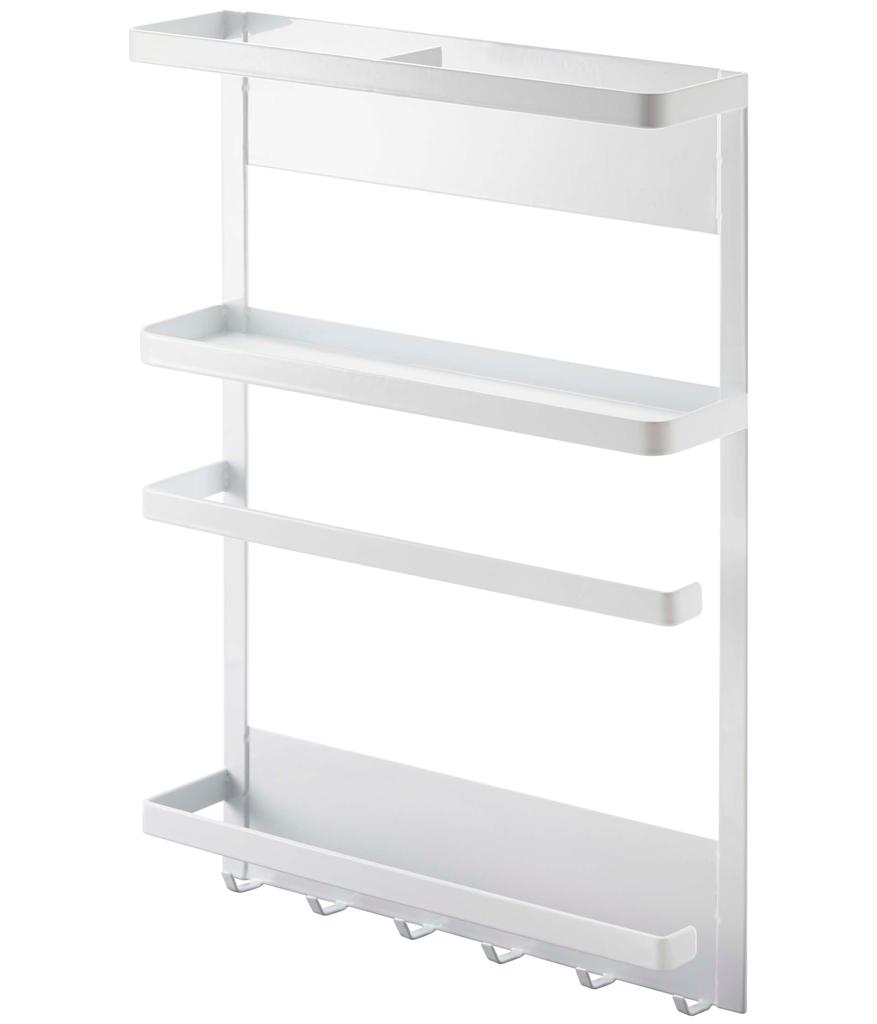 Diese Küchenaufbewahrungseinheit kann mithilfe eines Magneten einfach an der Seite des Kühlschranks befestigt werden.