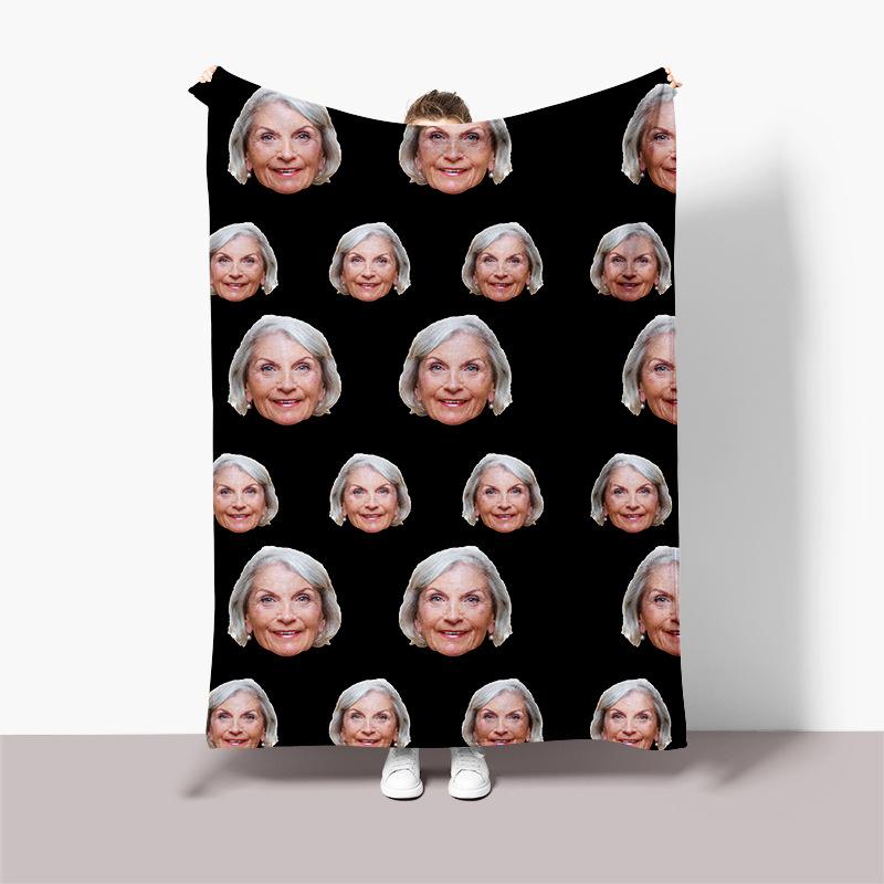 Personalisierte Flanelldecke mit schwarzem Hintergrund, Foto von einem Gesicht, Geburtstags-Erinnerungsdecke