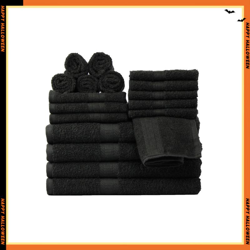 18 Piece 100% Cotton Towel Set, 4 Bath , 4 Hand and 10 Washcloths, Super Soft and Highly Absorbent Basic Solid Towel Set,Black