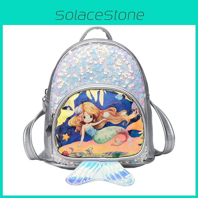 Kids Mermaid Backpack Pu Glitter Sequin Cartoon Girls School Bag For Girls