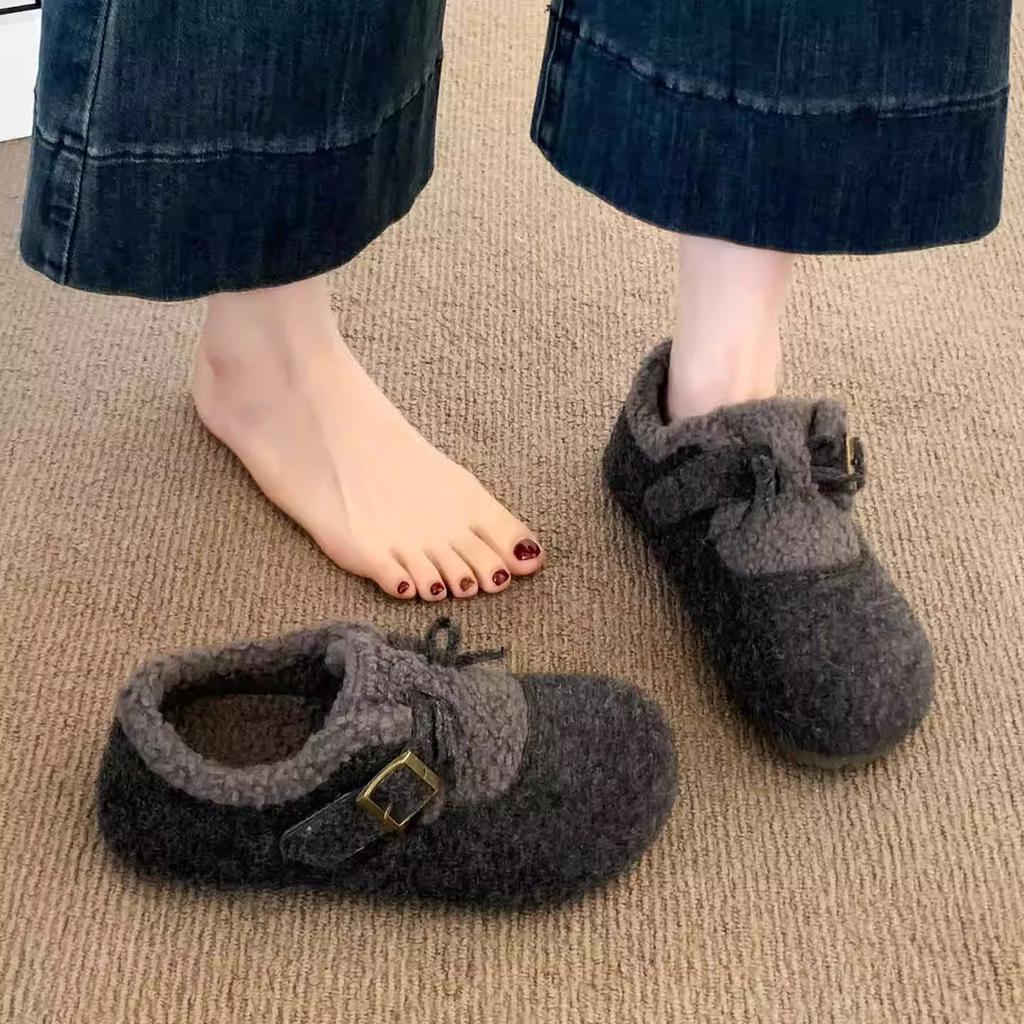 Vielseitige Retro-Innenhöhenerhöhung Flacher Boden Allumfassende Damen Neue Herbst Samt Weichsohle Thermische Baumwollschuhe