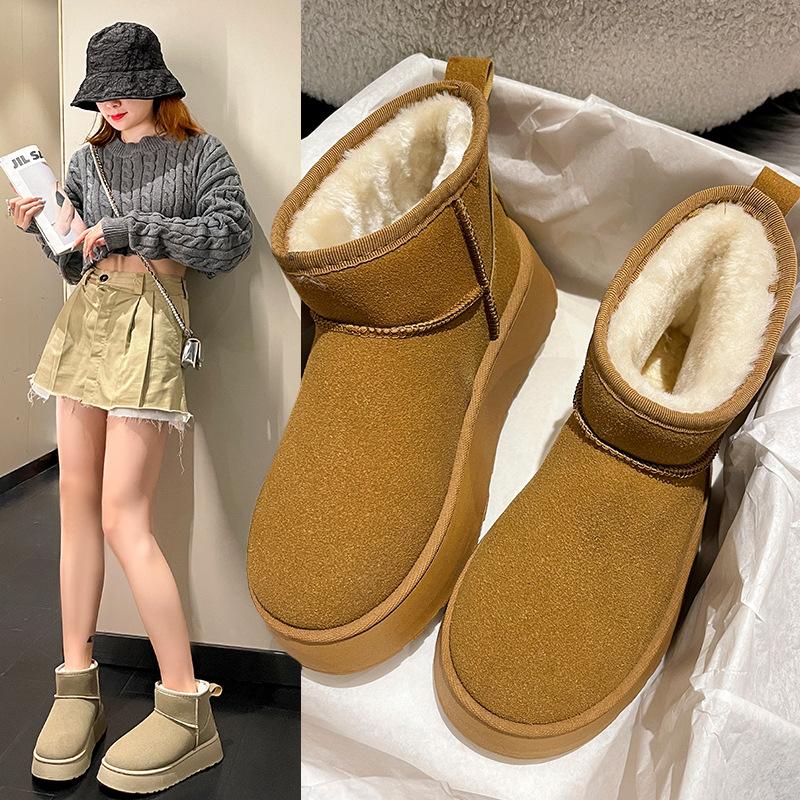 Dicksöhlige Schneestiefel für Damen zum Tragen im Winter, neue gefütterte verdickte wasserdichte, winddichte und rutschfeste Baumwollschuhe für Damen