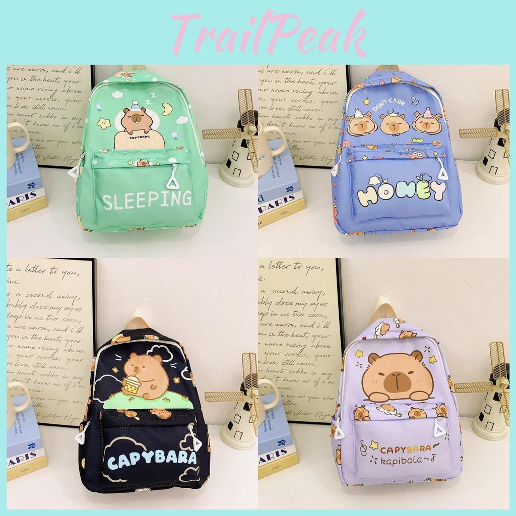 This children's backpack features a playful capybara cartoon print, crafted from durable nylon material with a polyester lining. Measuring approximately 25*11*31cm, it offers reliable storage for preschoolers. Its ergonomic, curved shoulder straps support comfortable wear during school activities. Suitable for kindergarten use, it supports weight distribution and reduces load strain. Easy to maintain, wipe clean with a damp cloth for daily use.