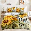 Sonnenblumen-Bettwäsche-Set Queen Size Schmetterlings-Bettdecken-Set Retro Gelbe Blume Bettdeckenbezug 3-teiliges Set Mit 2 Kissenbezügen