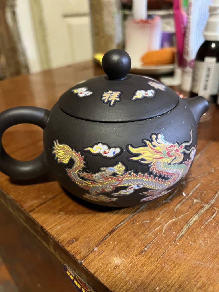 Handgefertigte Farbwechselnde Lila Ton Teekanne Drachen Phönixe Muster Tee-Sieb Wohnzimmer
