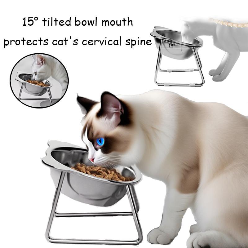 15° Tilted Cat Bowl, Elevated Cat Bowls - for Small Cats/Dogs,Indoor Stainless Steel Anti-Vomiting Pet Bowls,Spine Friendly