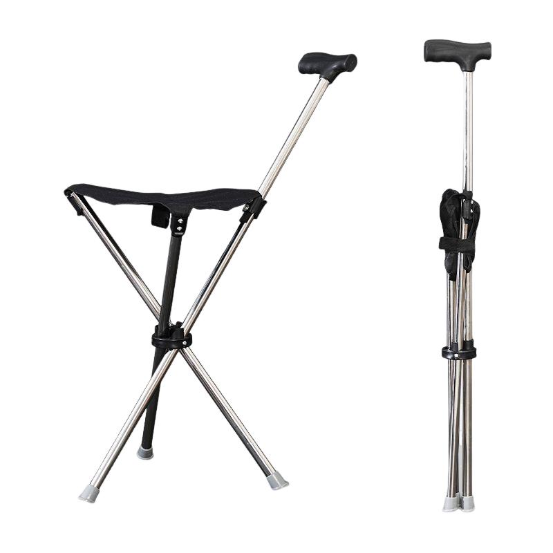 Anti-drop thickened stainless steel portable walking stick stool, anti-slip walking aid, lightweight walking stick with seat