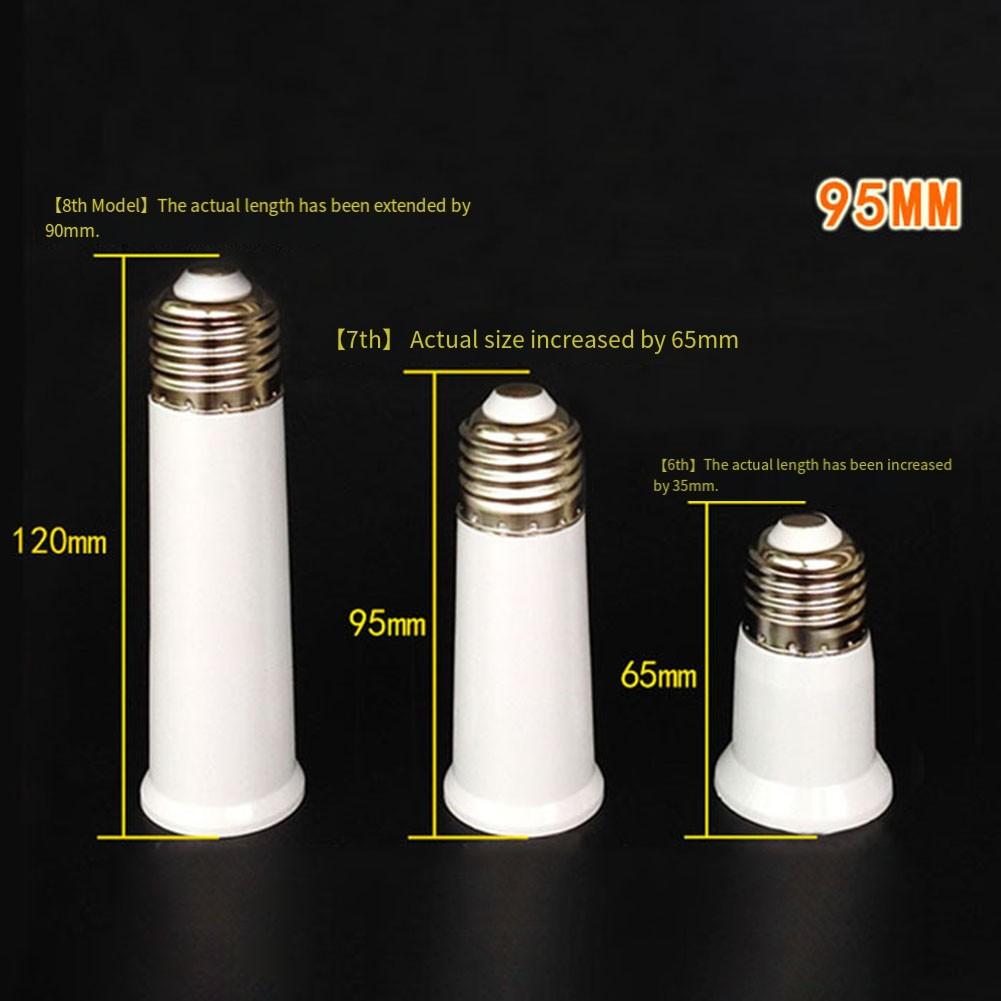 Vielseitiger E27-Verlängerungsadapter – Diese E27-zu-E27-Verlängerungsfassung fügt zusätzliche Länge hinzu (65mm/95mm/120mm Optionen) zu Ihrer Beleuchtungseinrichtung, wodurch sie mit LED-Lampen, Energiesparlampen, Glühlampen und mehr kompatibel wird.