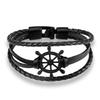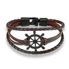 Fashion Retro Men's Ship Rudder Charm Bracelet Men's Multi Layer Leather Rope Chain Wrist Bracelet Ornaments Party Jewelry Gifts