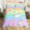 Einhorn Katze Bettbezug Set Queen,Regenbogen Einhorn Bettwäsche Set,Mädchen Cartoon Magisches Tier Süße Eiscreme Bettdeckenbezug