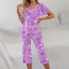 2 Piece Sets For Women Short Sleeve Top And Pants With Pockets Workout Soft Print Sets
