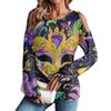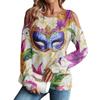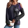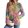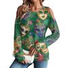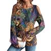 Damen Winter Oversized T-Shirt Modisch Schulterfrei Rundhals Vintage Blumendruck Pullover Langarm Oberteil