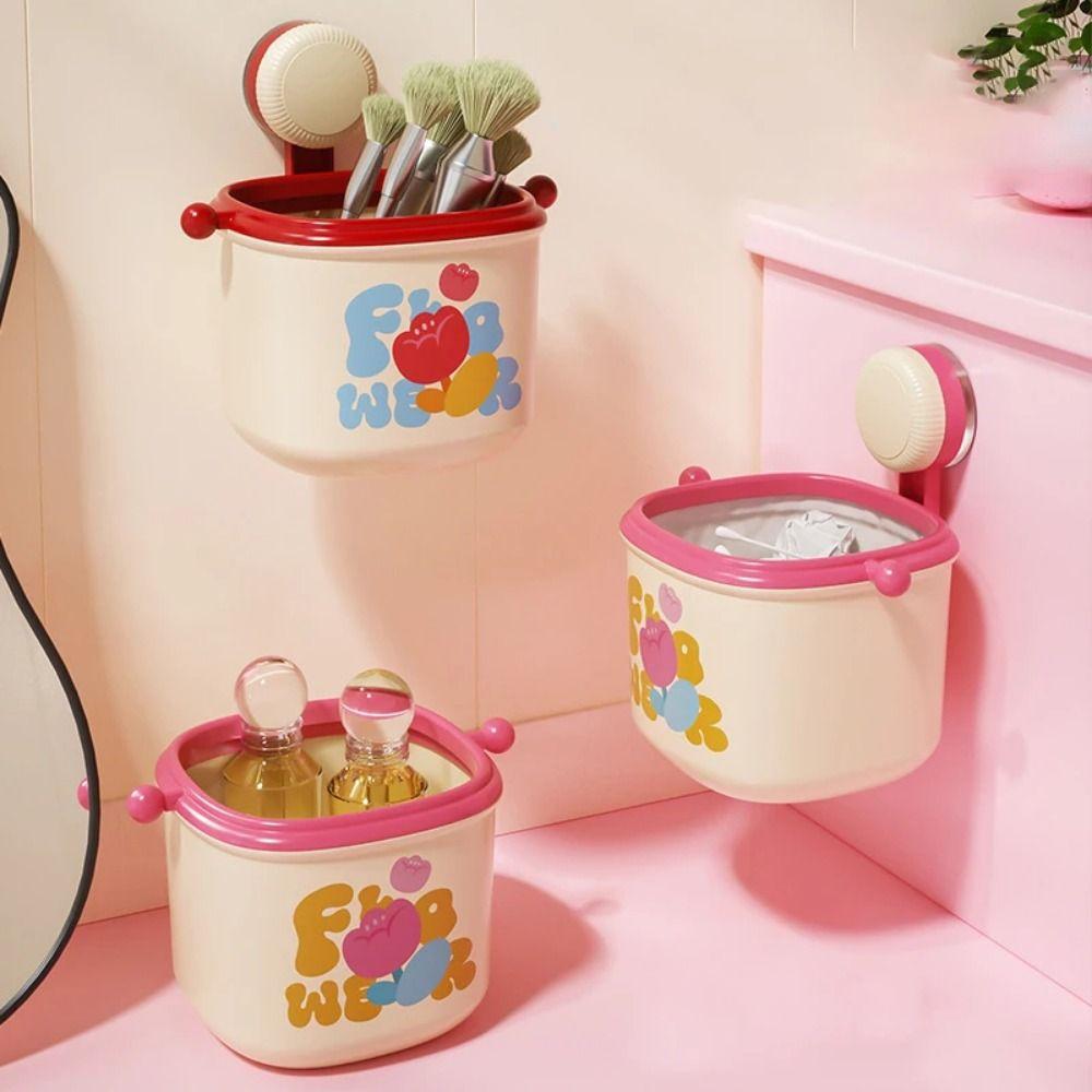 Stanzfreier Saugbecher-Mülleimer Niedlicher Cartoon-Aufbewahrungseimer Badezimmer-Ablageregale Abfalleimer