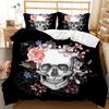 Totenkopf Bettbezug 3D Skelett Floral Totenkopf Muster Bedruckte Bettwäsche Bettbezug, Leichte Mikrofaser Gothic Bettwäsche Queen Size